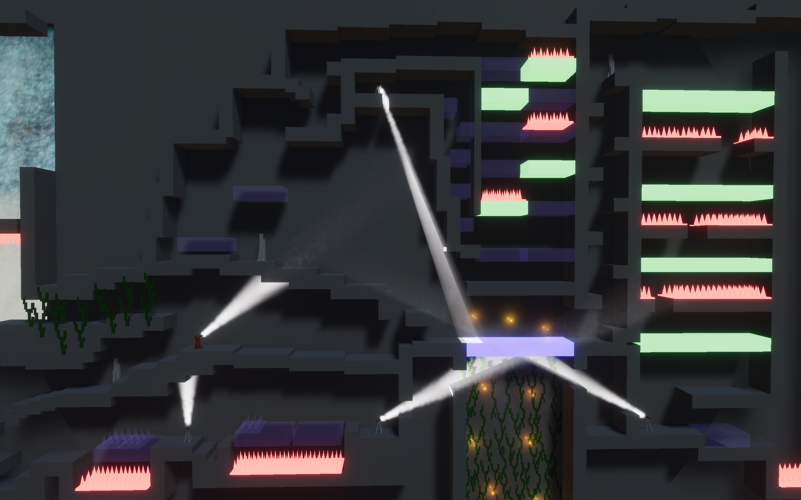 We last project of my first year as a game design student was a 2.5D game. We were 6 game/level designers, 2 programmers and 2 music and sound designers. It was made in 6 weeks. I mainly worked as a game and level designers, but I also helped the programmers on some mechanics and on the implementation of visual and sound effects.
